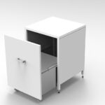Access to the storage volume is done by pulling the trolley which is supported by 2 wheels and guided by 2 sliding rails.