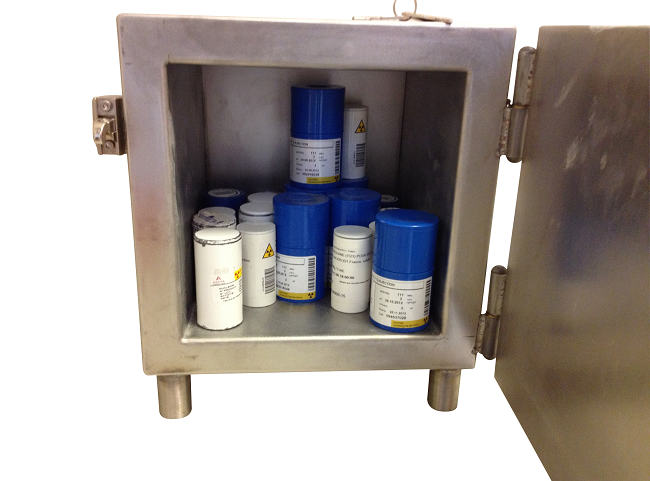 Use The small shielded storage safe allows the storage of small quantities of radiopharmaceuticals and reference sources on a bench.   Characteristics This small shielded storage safe, according to the regulations, incorporates a key lock to the handle. Because of its dimensions, it is easy to fit on a bench. Available in sereval thicknesses of shielding: 5, 10, 20, 30 and 40 mm […]