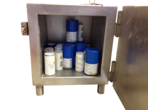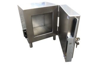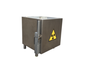 The small shielded storage safe allows the storage of small quantities of radiopharmaceuticals and reference sources on a bench.