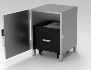 The under-bench storage cabinet allows to store your liquid radioactive elements in canisters.