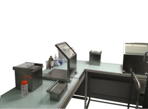 This tabletop shield is for the manipulation of radiopharmaceuticals on benchtop, not requiring particular confimement: quality control, pet shops, pre-clinical tests …