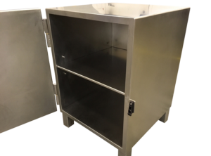The under-bench storage cabinet allows radiopharmaceuticals, reference sources and all radioactive preparations.