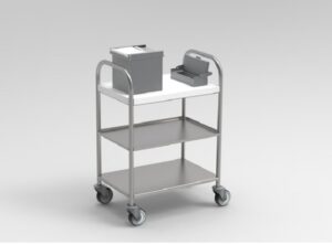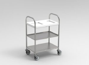 The transport trolley is designed for syringe carrier and needle waste containers.