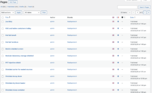 log in op admin en klik op. https://sanatec-qc.com/wp-admin/edit.php?post_type=page&page_brands=radioprotech