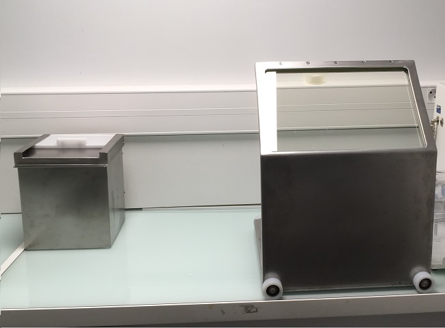 This tabletop shield is for the manipulation of radiopharmaceuticals on benchtop, not requiring particular confimement: quality control, pet shops, pre-clinical tests …